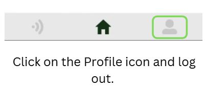 Profile button to log out.